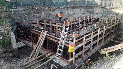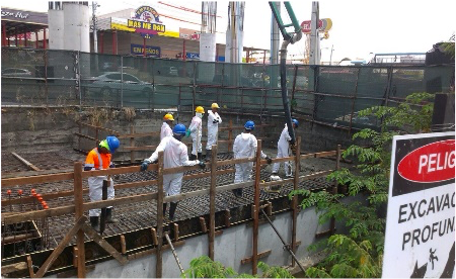 - Construcción de losa piso y paredes de concreto reforzado (vaciado con bomba).