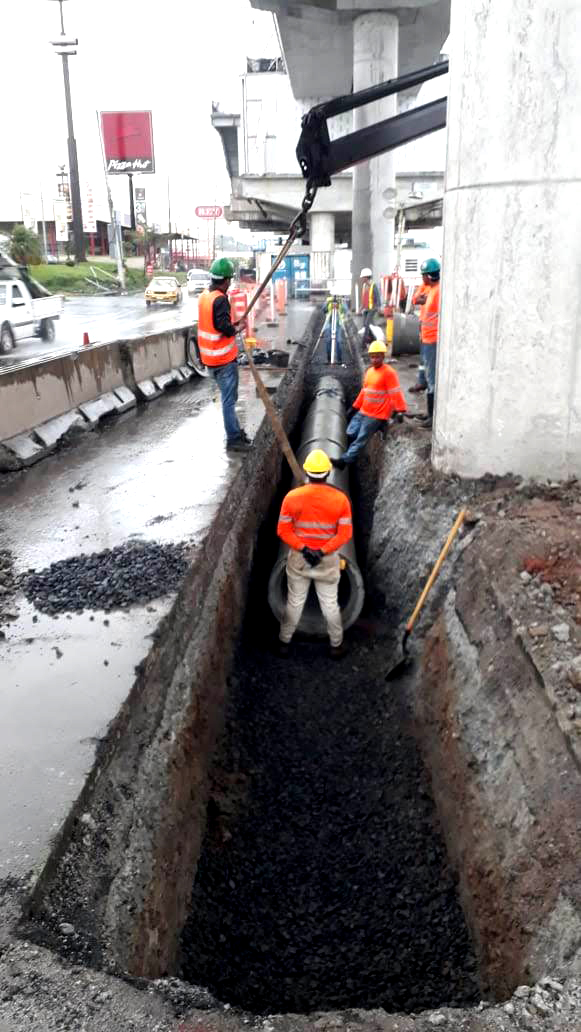 - Instalación de tuberías de concreto 24" y 30" para drenaje pluvial.