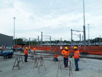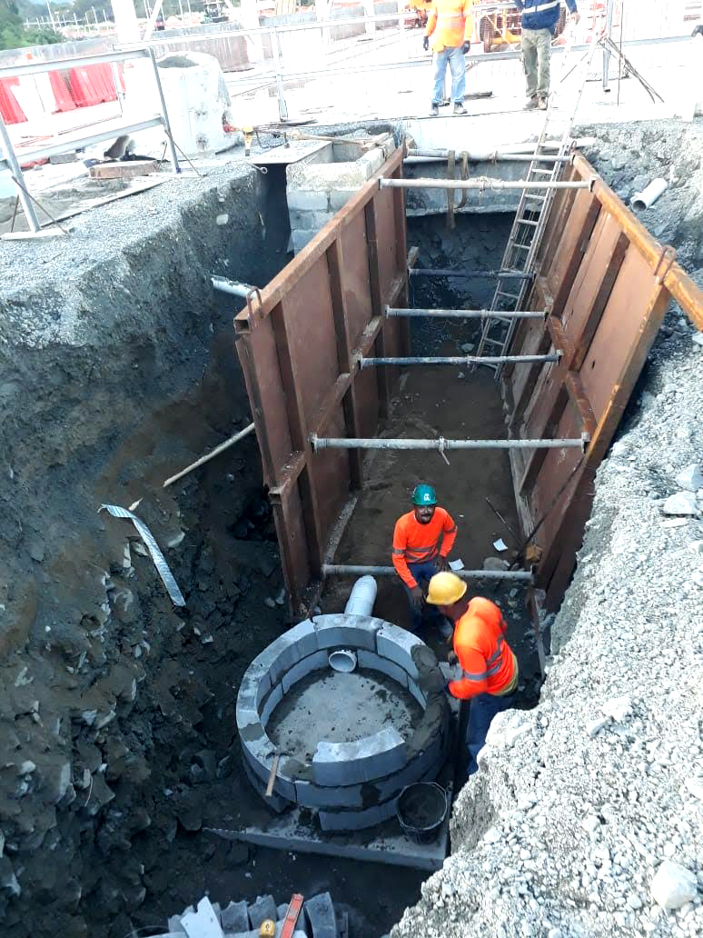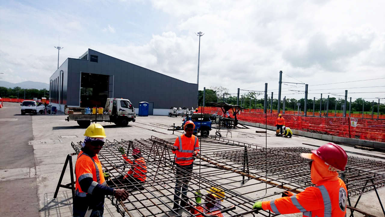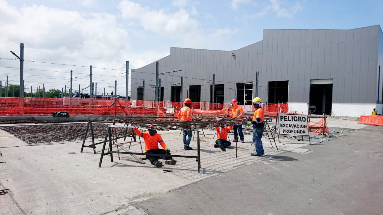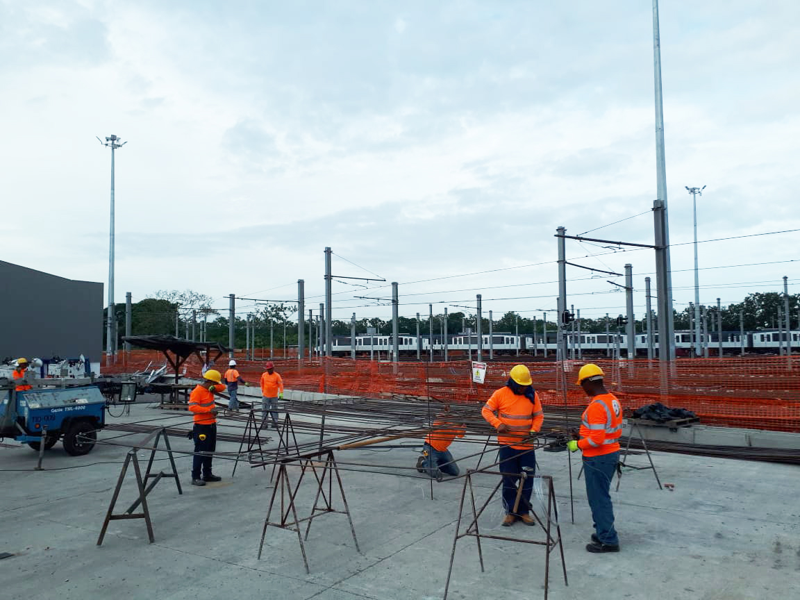 Construcción de losa de recepción de trenes y drenaje sanitario en patios y talleres de la Línea 2 del Metro de Panamá.